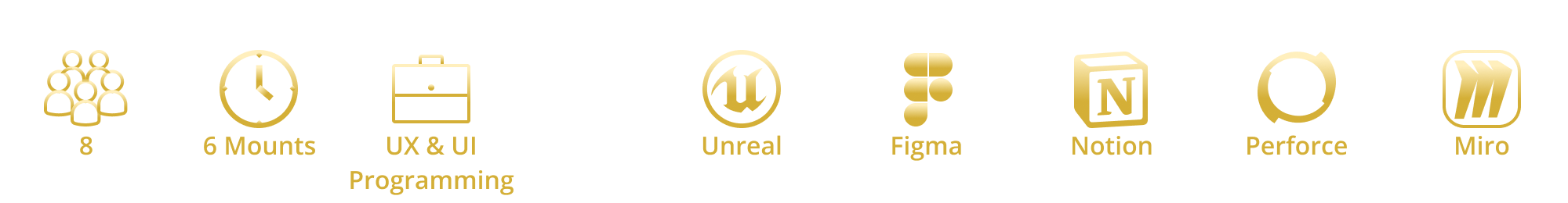 I spent just under six months at Ancient Well Entertainment, where we developed a game from scratch. I completed my internship when we shipped the alpha.The development process was a bit different from the norm. The studio had three UX design interns, and we were grouped as a team to create the game’s UI together. Our goal was to deliver the UI at 80% polish for the alpha, so the groundwork would be ready when we left.